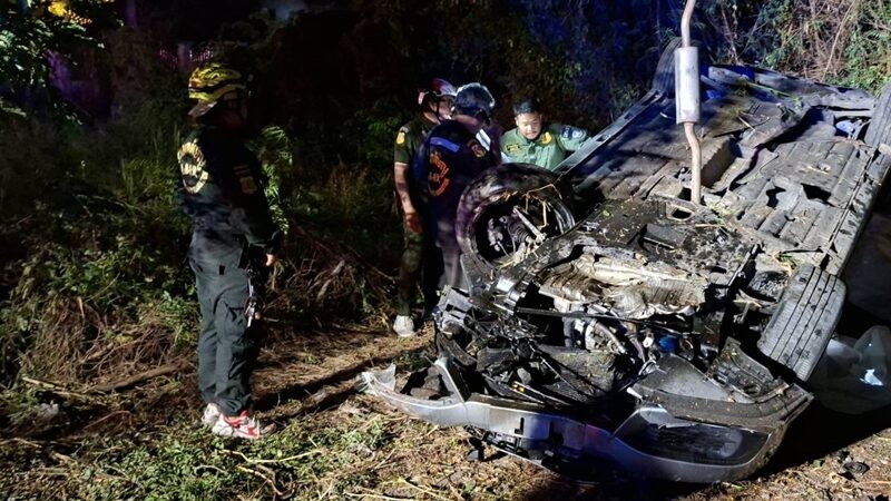 จุดเกิดเหตุพบรถเก๋งยี่ห้อฮอนด้า ทะเบียนพระนครศรีอยุธยา พลิกคว่ำหงายท้อง สภาพพังเสียหายอย่างหนัก ภายในรถมีผู้โดยสารรวม 6 คน โดยพบผู้เสียชีวิตในที่เกิดเหตุ 2 ราย ได้แก่ นายเขมชาติ (ขอสงวนนามสกุล) อายุ 20 ปี ซึ่งเป็นผู้ขับขี่ และนายศุภชัย (ขอสงวนนามสกุล) อายุ 23 ปี