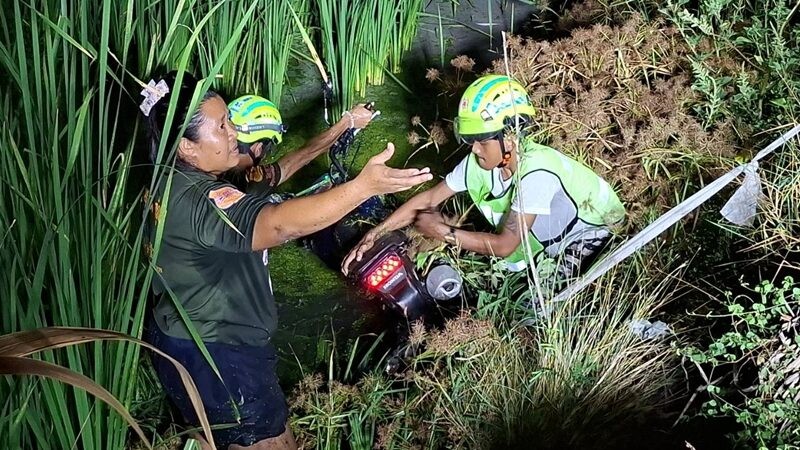 ห่างจากจุดเกิดเหตุประมาณ 30 เมตร พบรถจักรยานยนต์ยี่ห้อฮอนด้า MSX ทะเบียนนครนายก ตกอยู่ในน้ำริมทาง สภาพเสียหาย โดยพบผู้เสียชีวิตเป็นชาย 1 ราย คือ นายกิตติพันธ์ (ขอสงวนนามสกุล) อายุ 21 ปี ผู้ขับขี่ ส่วนหญิงสาวซึ่งนั่งซ้อนท้ายมาได้รับบาดเจ็บ เจ้าหน้าที่เร่งนำส่งโรงพยาบาลเพื่อรักษาอาการ